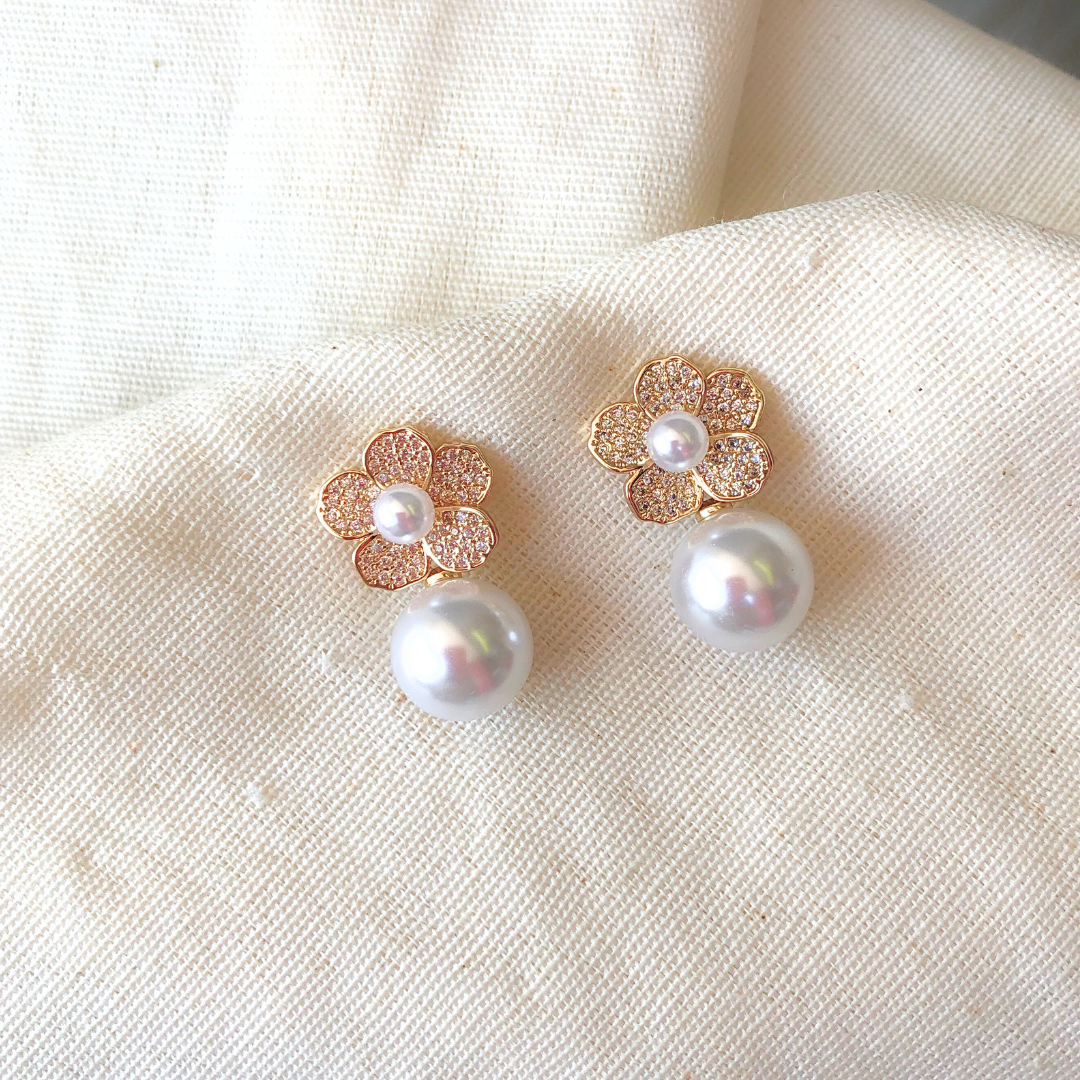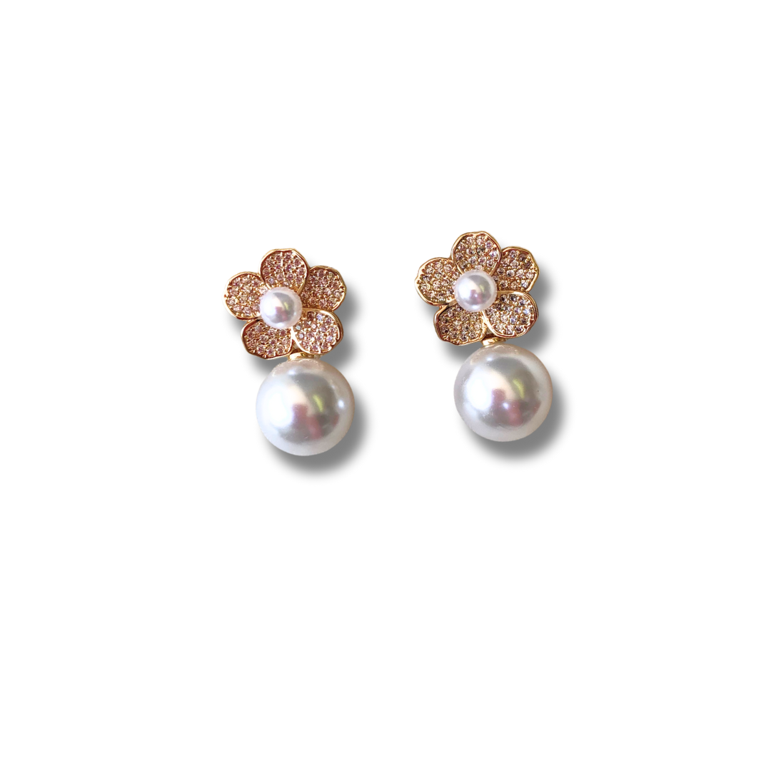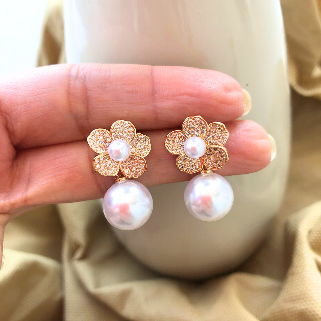 Aurora pearl: Um brinco delicado que une a sofisticação da pérola com o brilho suave da flor cravejada em dourado.