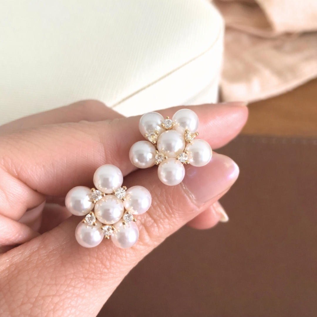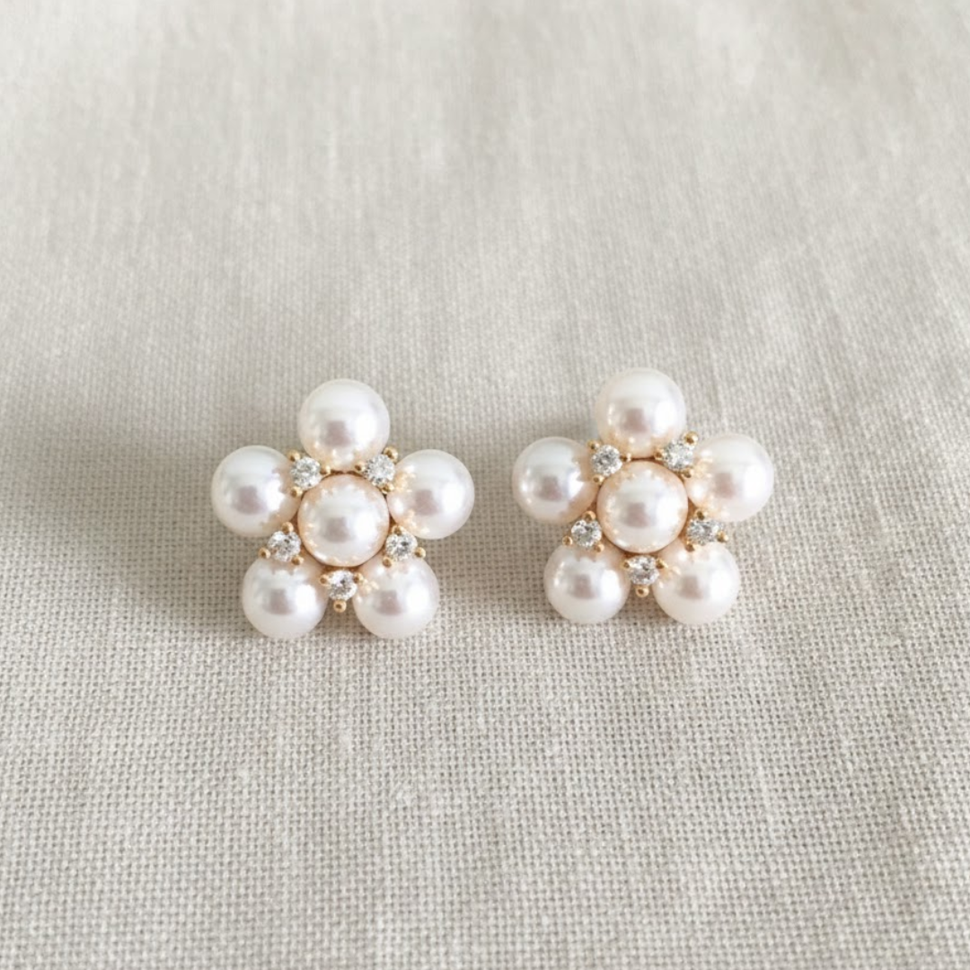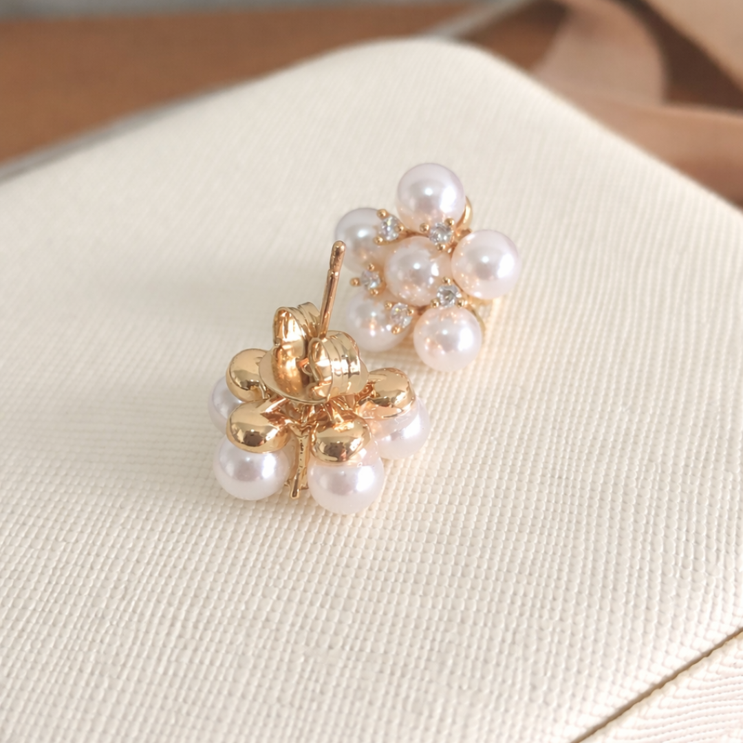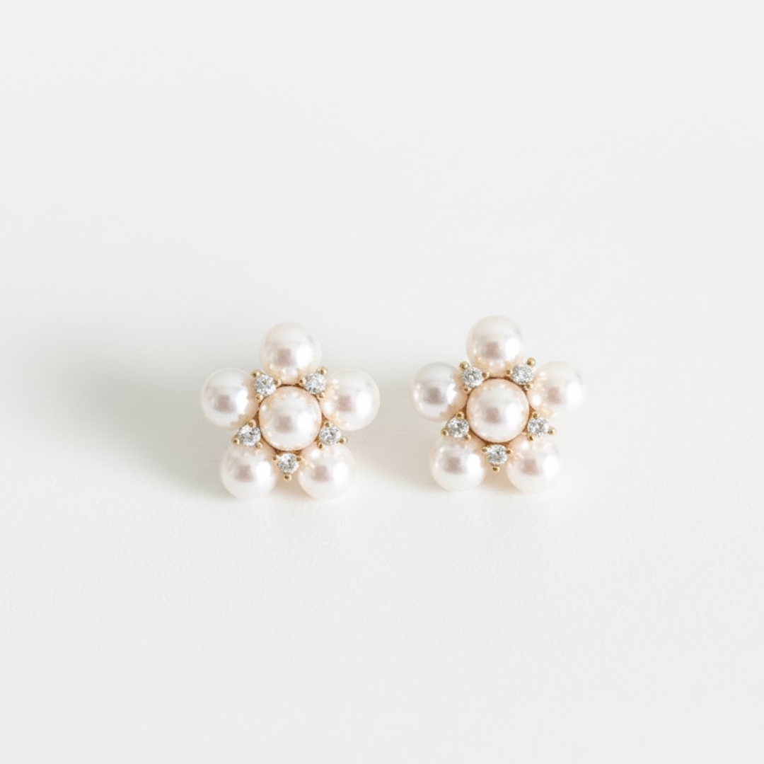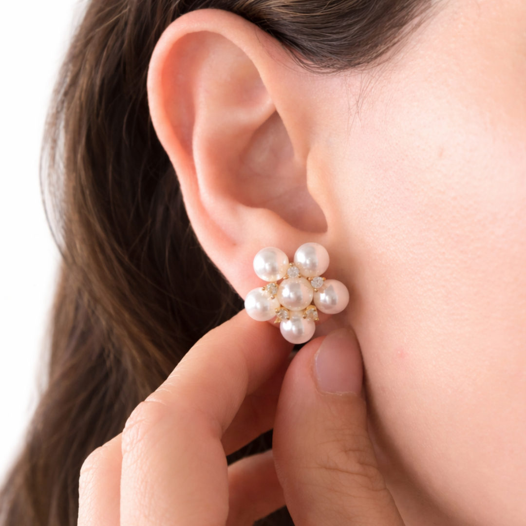 O brinco buquê de pérolas encanta com seu design delicado em formato floral. Ele é perfeito para quem busca romântismo e charme atemporal.