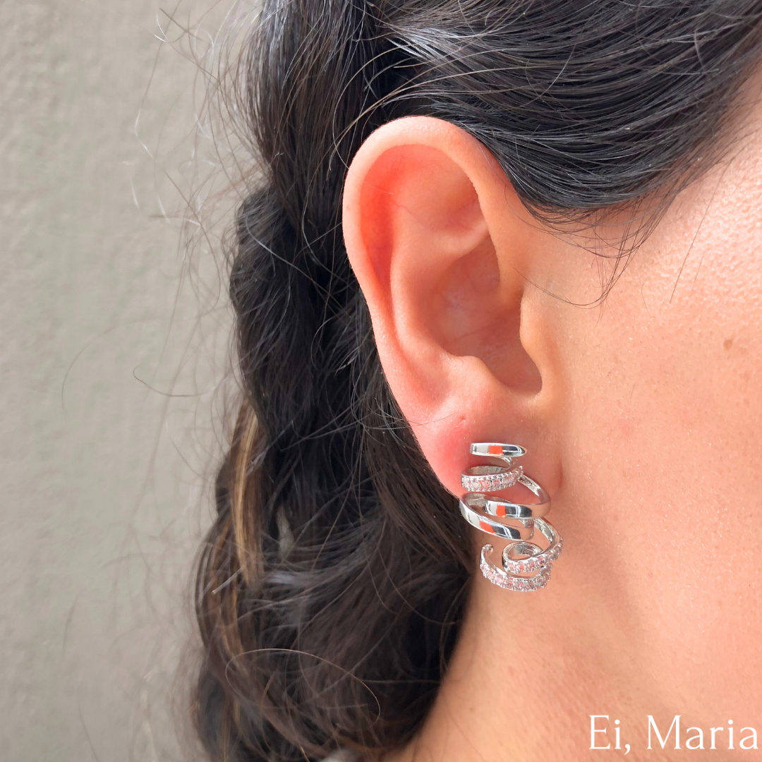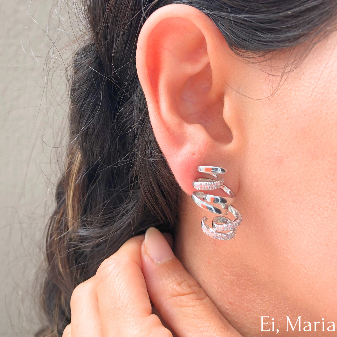Brinco Curly Cristal Silver: Um design moderno e único, com curvas prateadas elegantes e detalhes cravejados de cristais brilhantes. Perfeito para quem busca sofisticação com um toque de ousadia. Ideal para ocasiões especiais ou para elevar o visual do dia a dia com charme e estilo!