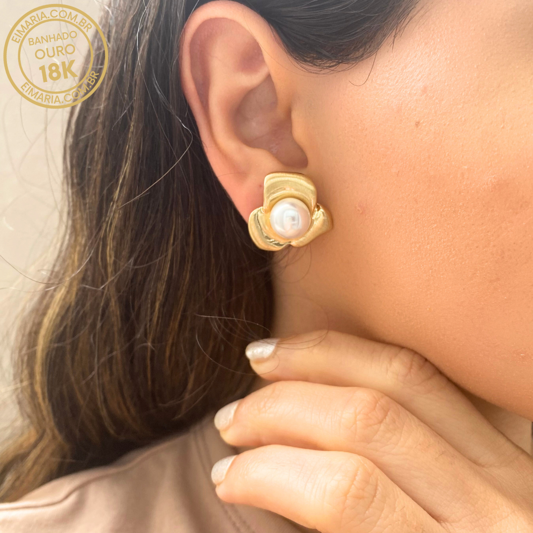 O Brinco Flor de Pérola combina o charme da natureza com a elegância das joias. Seu design apresenta uma flor dourada delicada, com uma pérola evidente no centro, criando um contraste sofisticado e atemporal. A peça é perfeita para quem busca um acessório que una beleza clássica e modernidade, adicionando um toque de luxo a qualquer look. Ideal para ocasiões especiais, o Brinco Flor de Pérola é uma escolha encantadora e refinada.