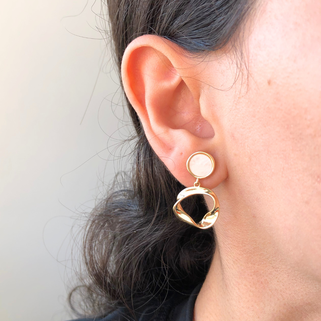 O Brinco Madrepérola Alba carrega a beleza serena dos primeiros raios da manhã. A madrepérola reflete luz com suavidade, enquanto o design orgânico abraça a pedra como uma moldura natural. Uma joia que traduz leveza, sofisticação e presença atemporal. Para quem escolhe brilhar de forma sutil, elegante e única