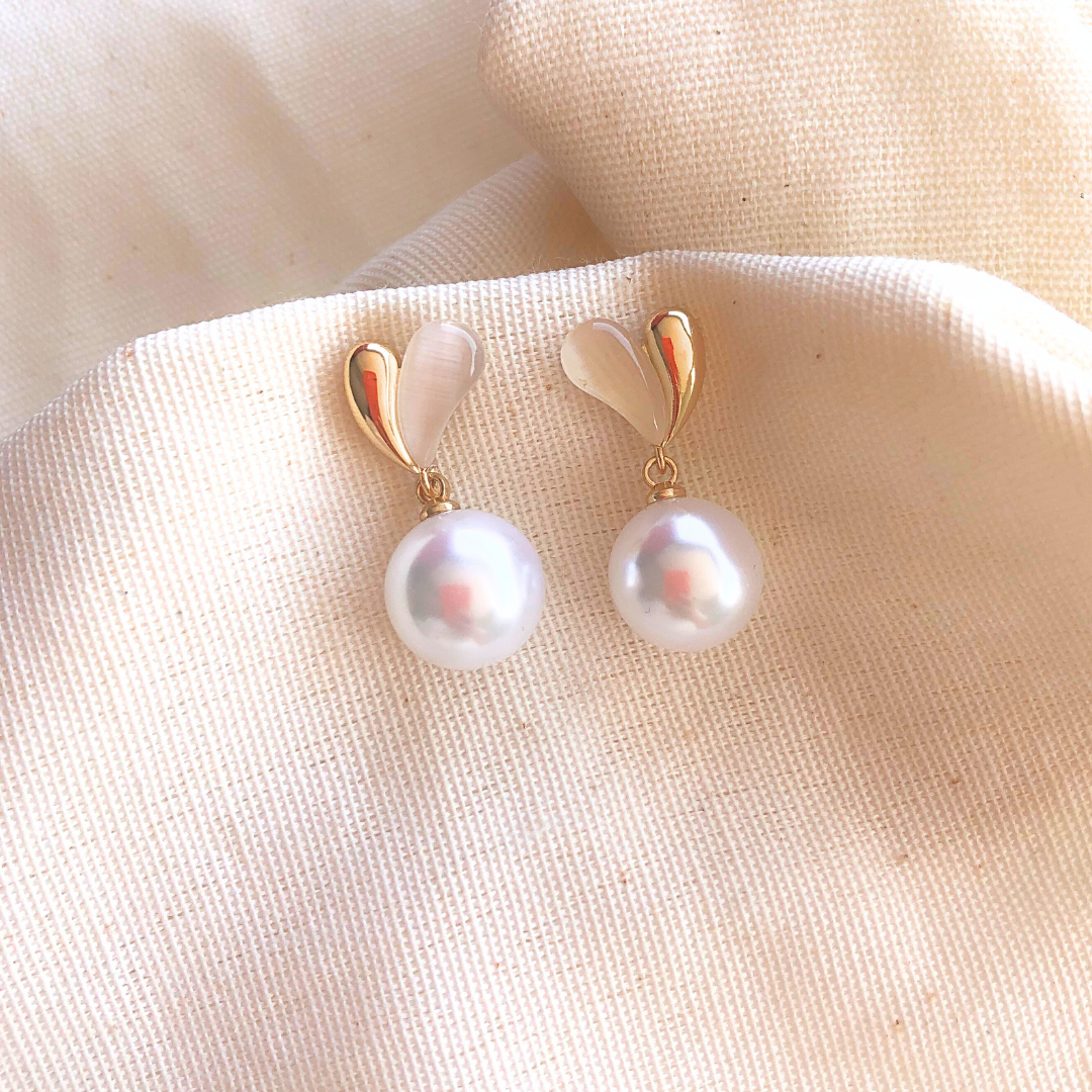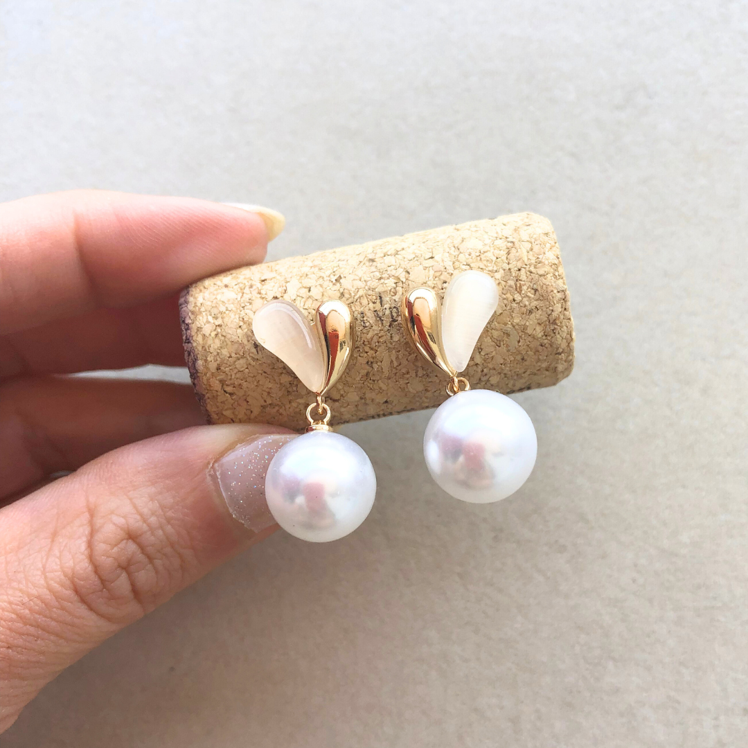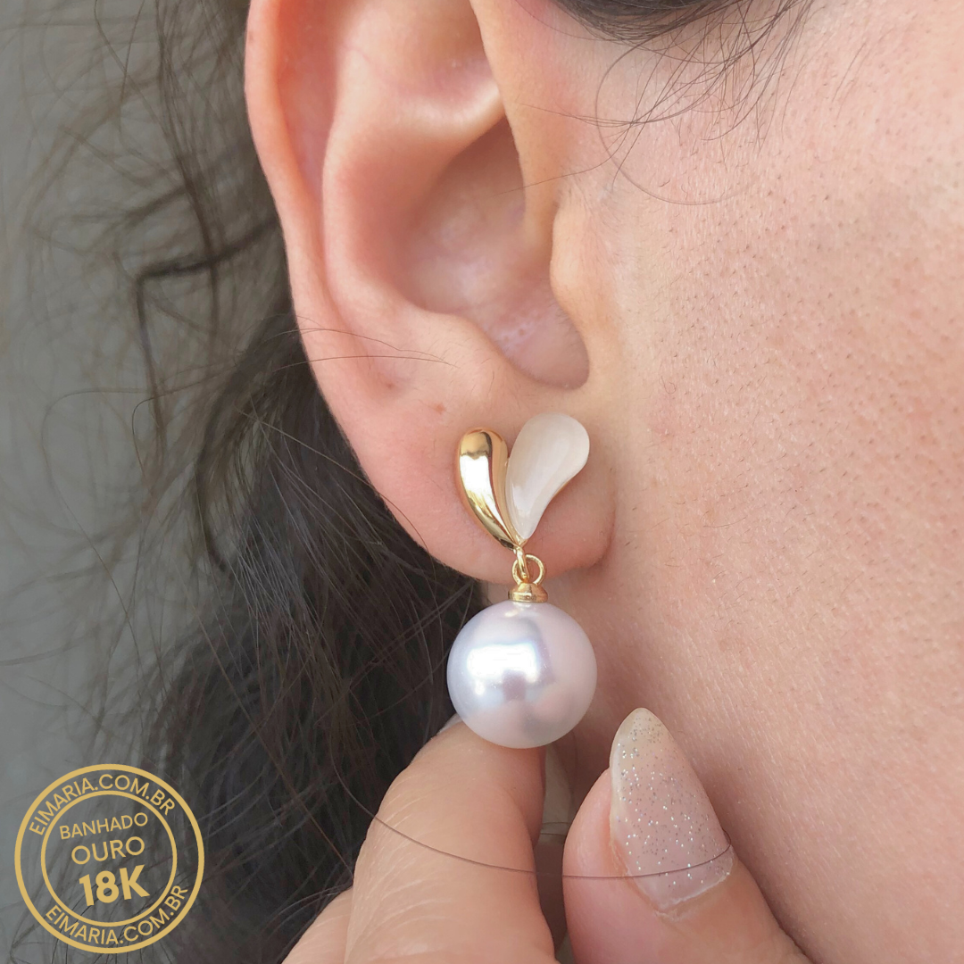 O Brinco Pérola Amour transmite delicadeza e romantismo com seu detalhe em formato de coração dourado.
