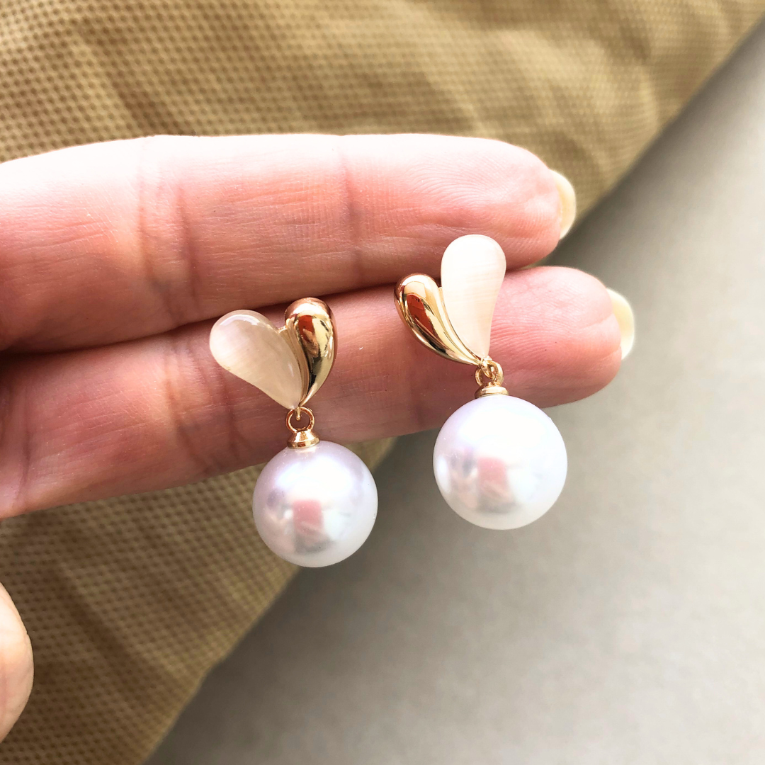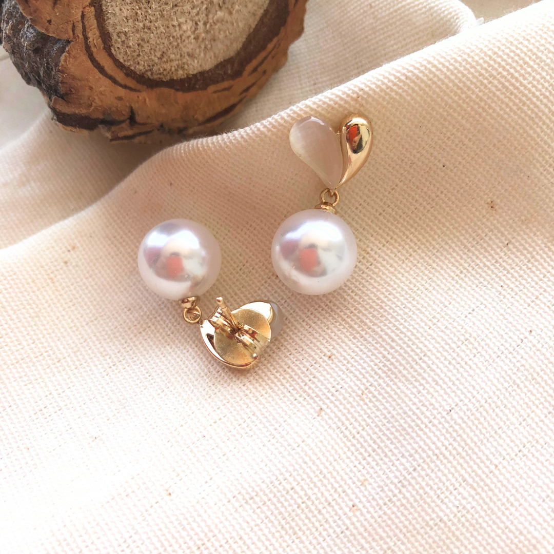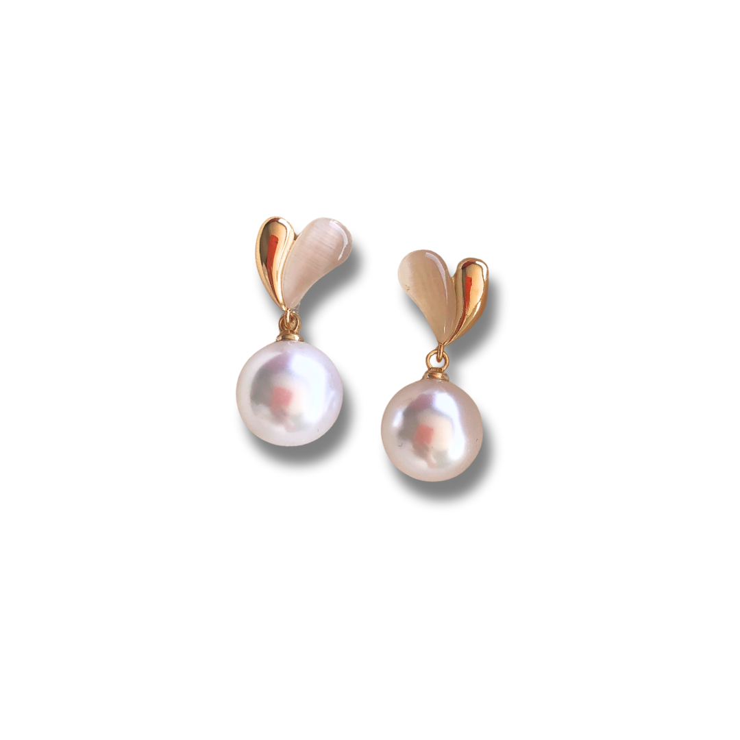 O Brinco Pérola Amour transmite delicadeza e romantismo com seu detalhe em formato de coração dourado.