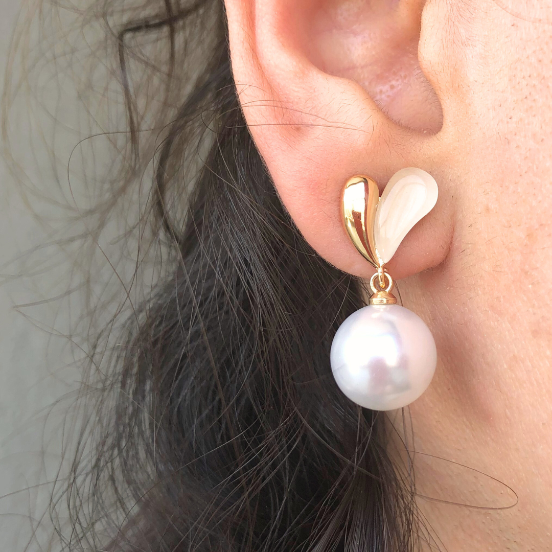 A pérola pendente traz sofisticação e um toque clássico atemporal.