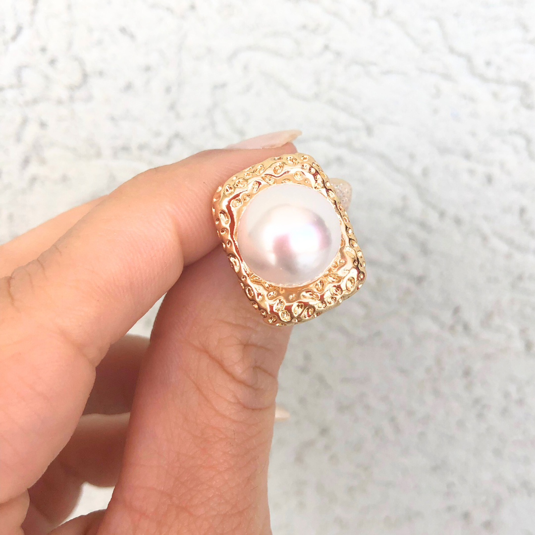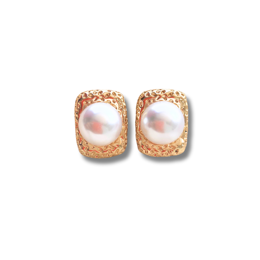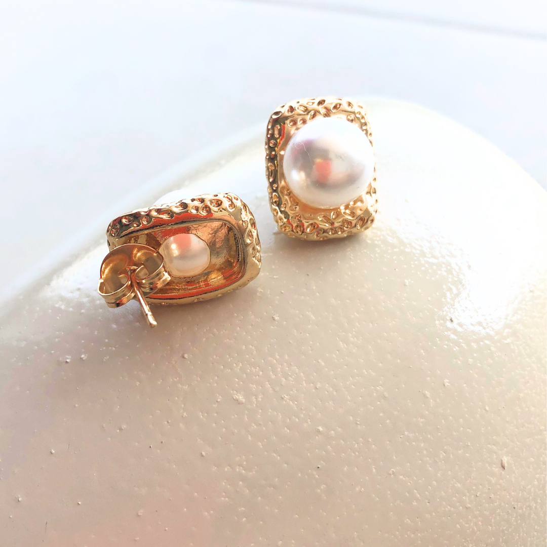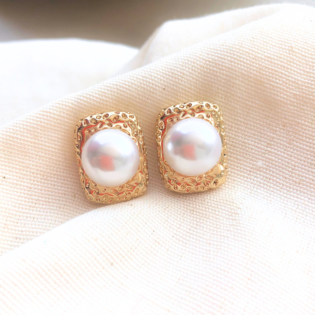 Brinco pérola botton: Com design texturizado que valoriza a pérola central.
