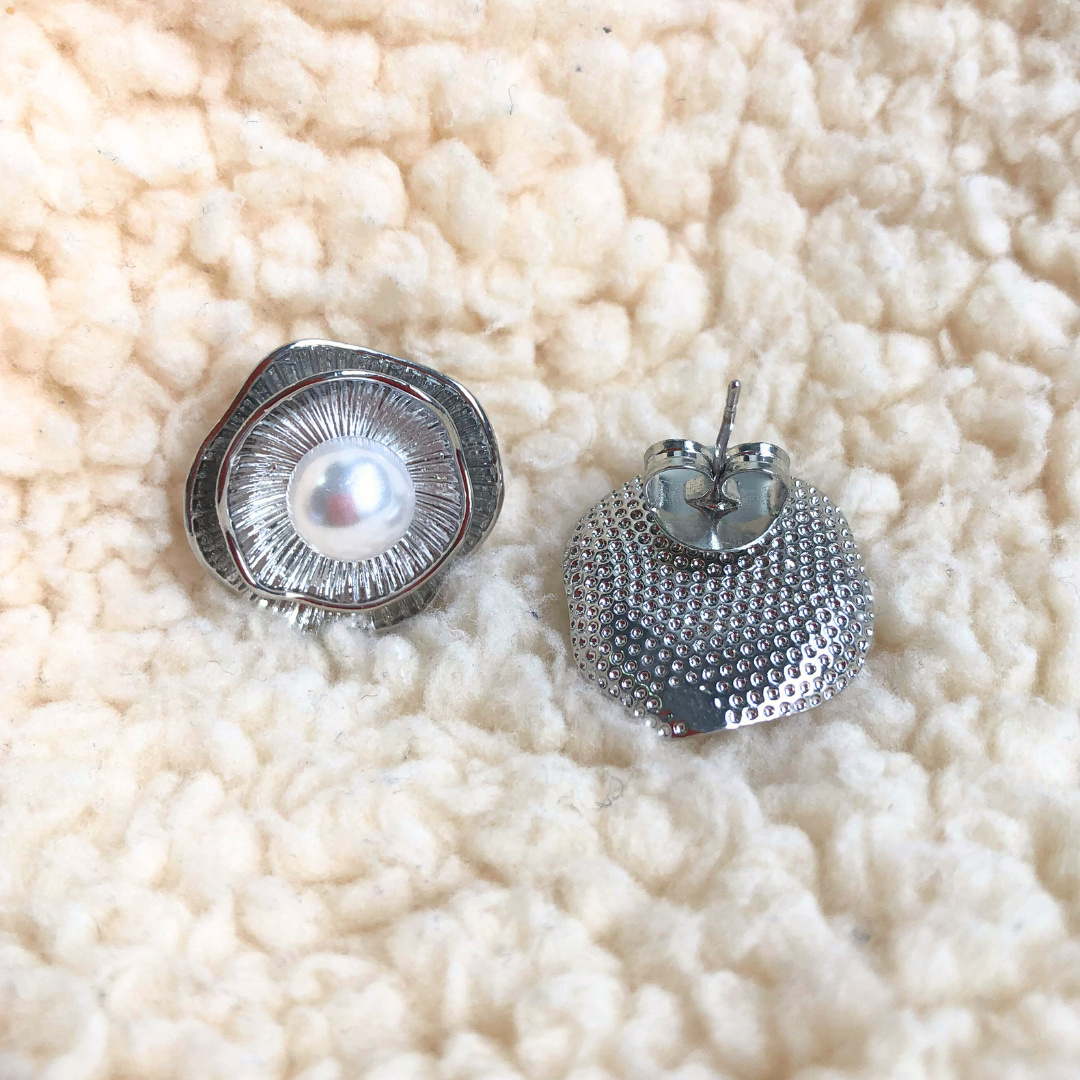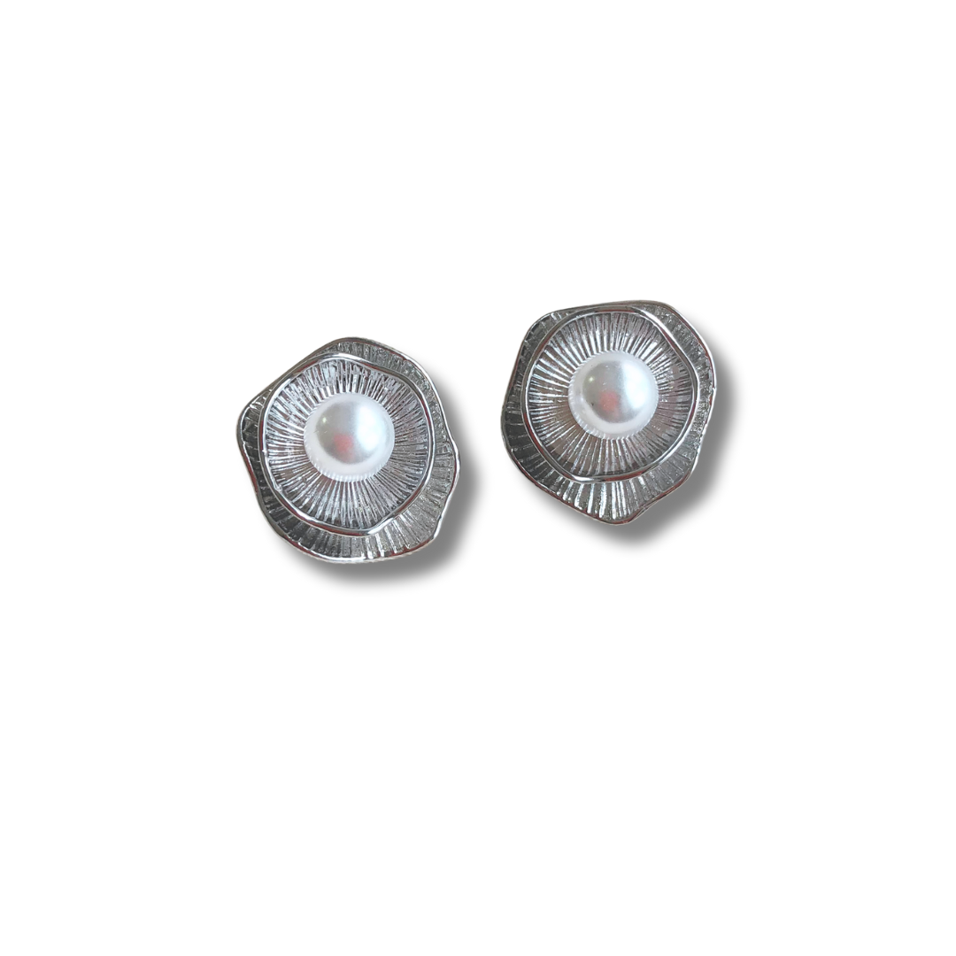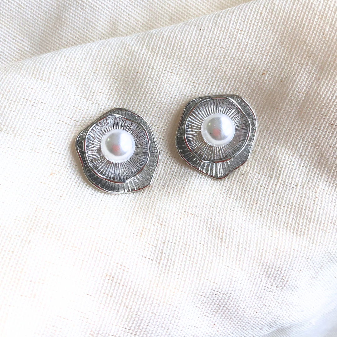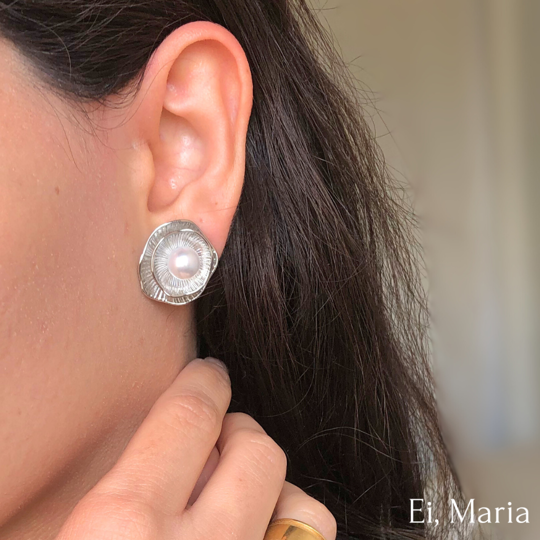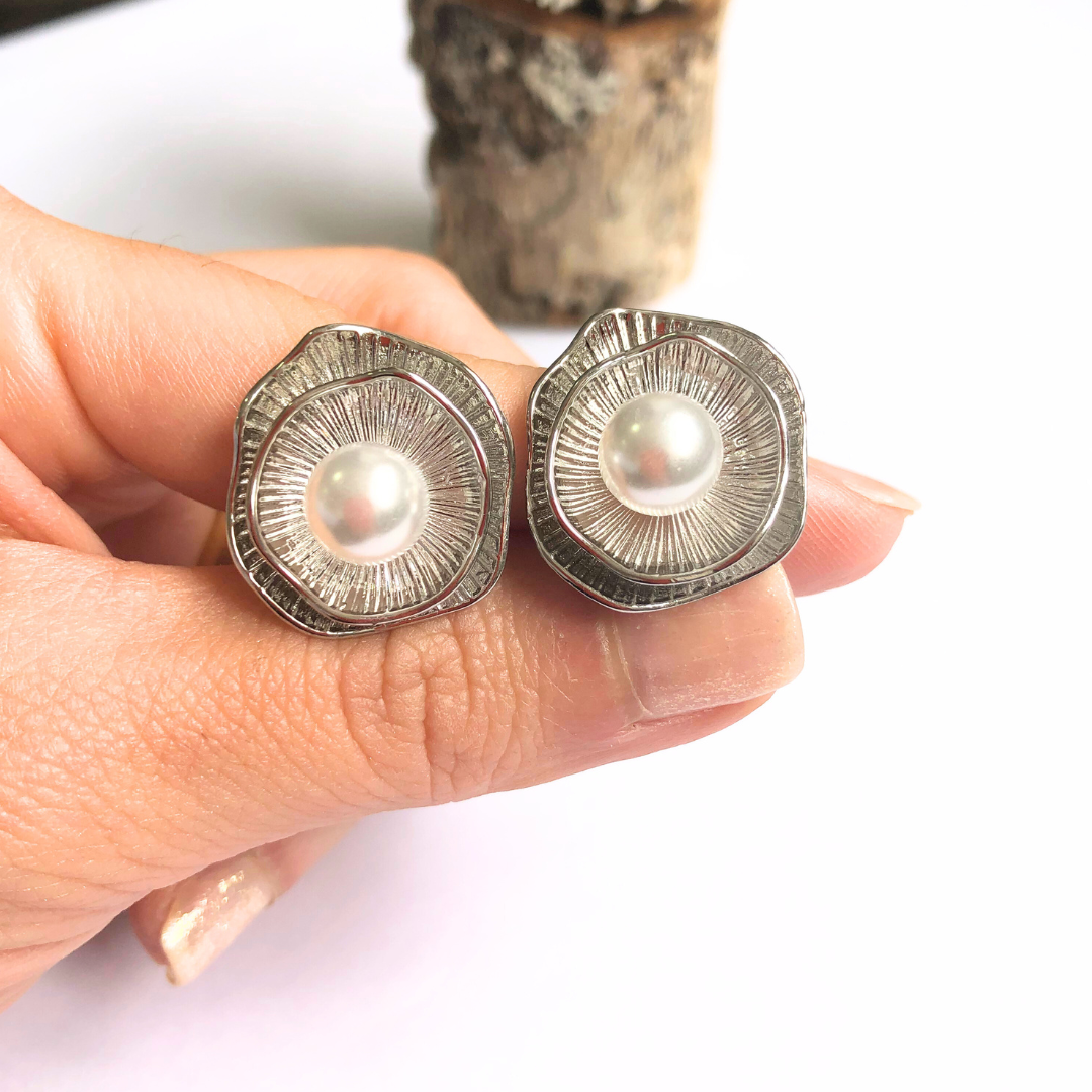 A pérola central ilumina o modelo, enquanto as linhas texturizadas ao redor criam um efeito radiante.