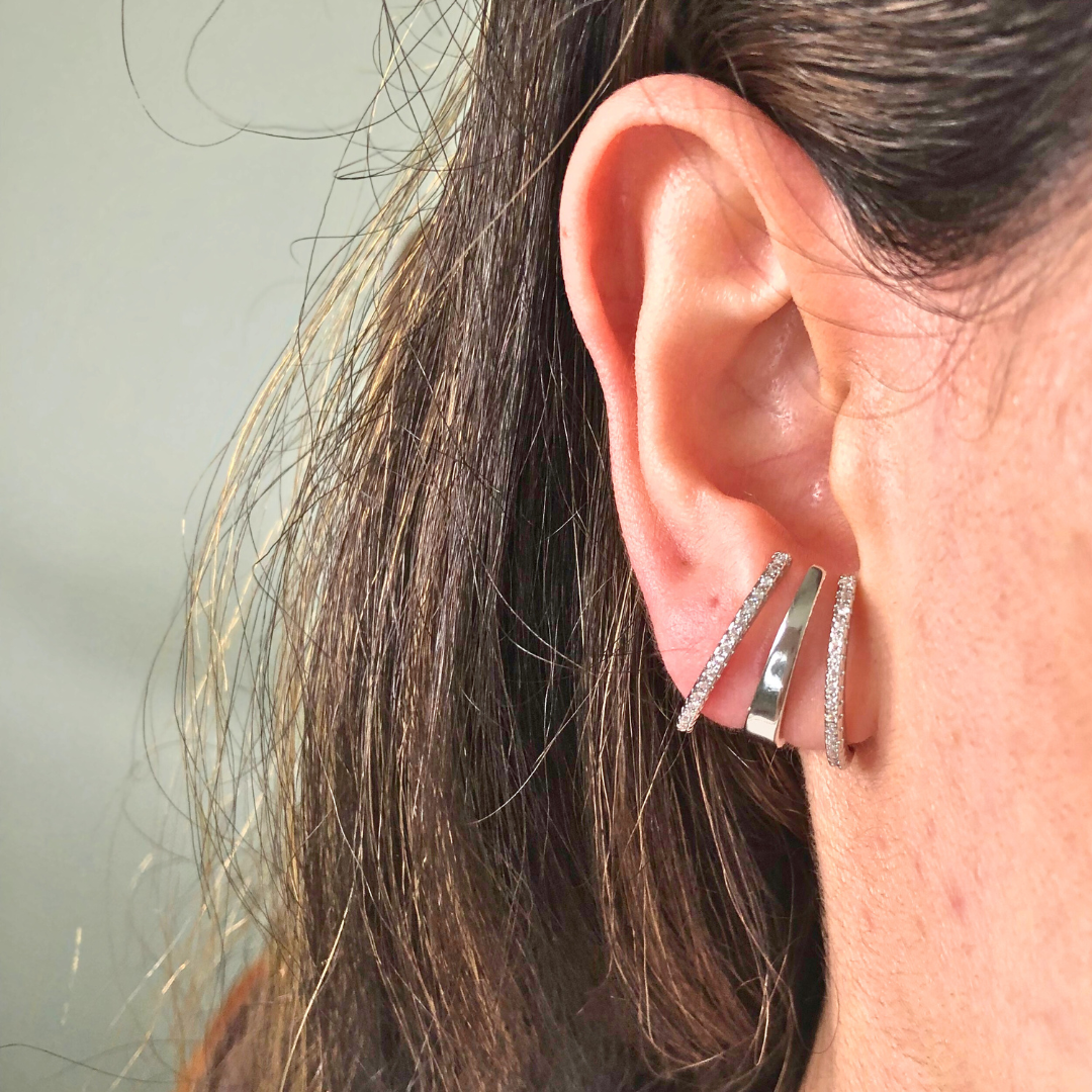 O brinco triple in é um brinco super moderno e atemporal, ele é um brinco com um único pino, você só precisa de apenas um furo na orelha para usar ele, e o mais incrível é que ele faz parecer que você está usando três argolas abraçando sua orelha. Um brinco que também é sexy e versátil. Tenha um desse em sua coleção e arrase por aí.