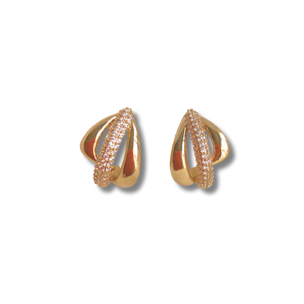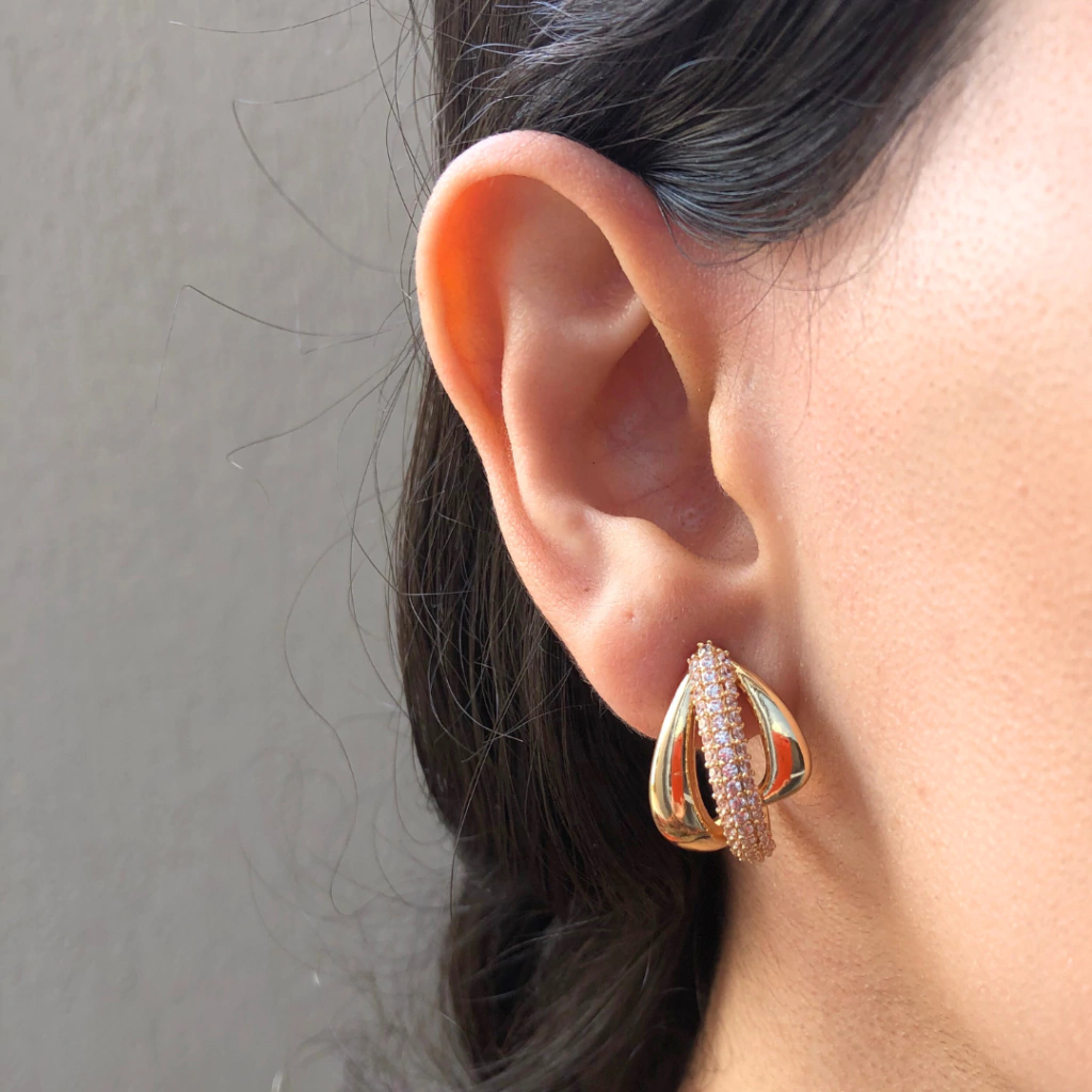 Design marcante em cada detalhe. O Brinco Triplo Strass é composto por três aros que se entrelaçam em um movimento harmonioso, com fileiras de strass que adicionam brilho sem exagero. Uma peça versátil, elegante e cheia de presença, feita para quem valoriza sofisticação em todas as ocasiões. Um toque moderno que transforma qualquer look.